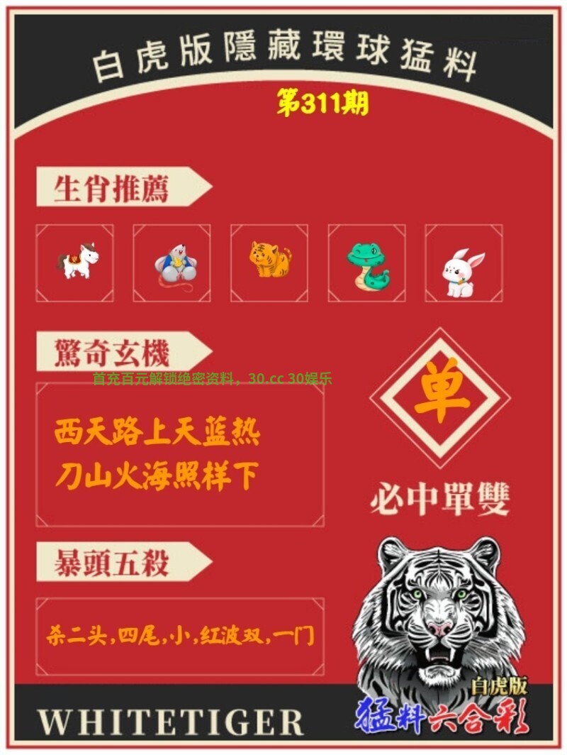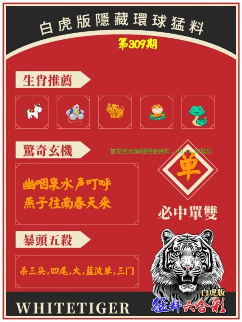 | 310期:单双中特▷单单单◁开:虎16错 |